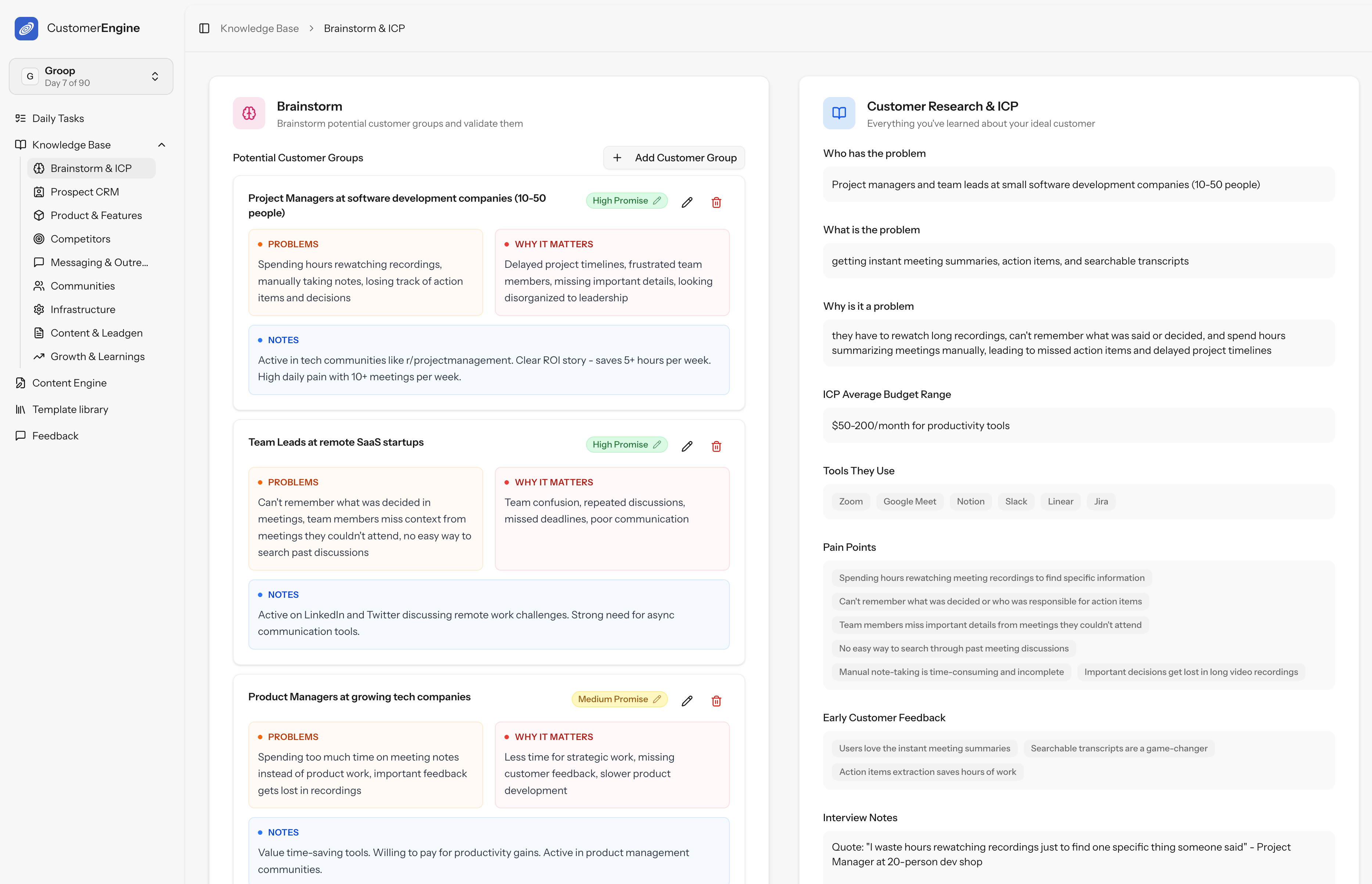 Define your ideal customer. Store who they are, their problems, and why it matters.